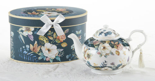 Porcelain Tea Pot, English Camellia 9.5 x 5.6"